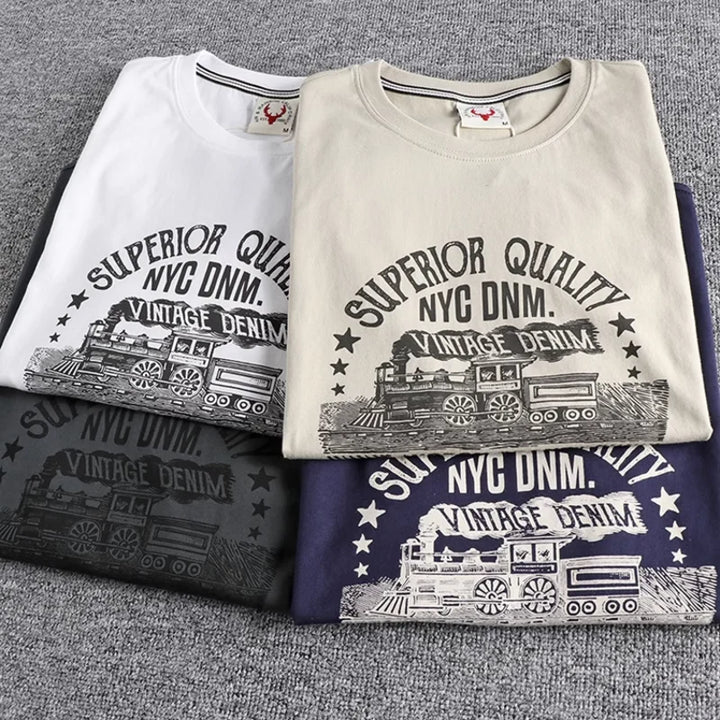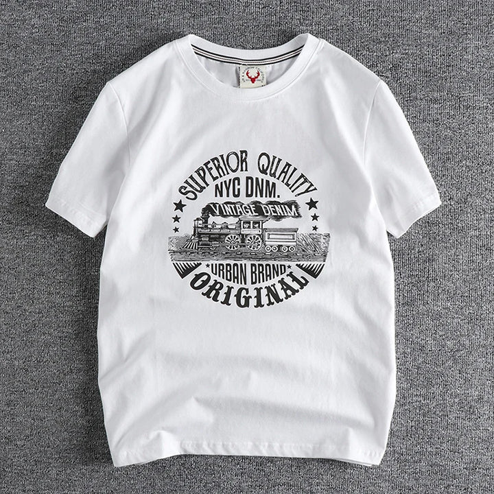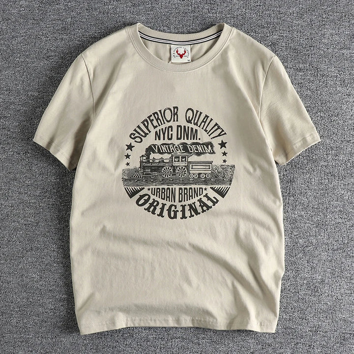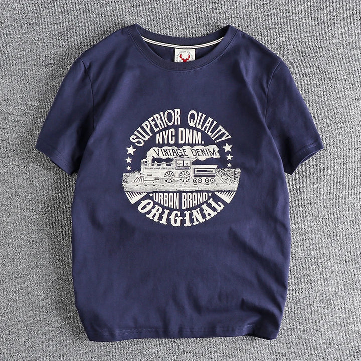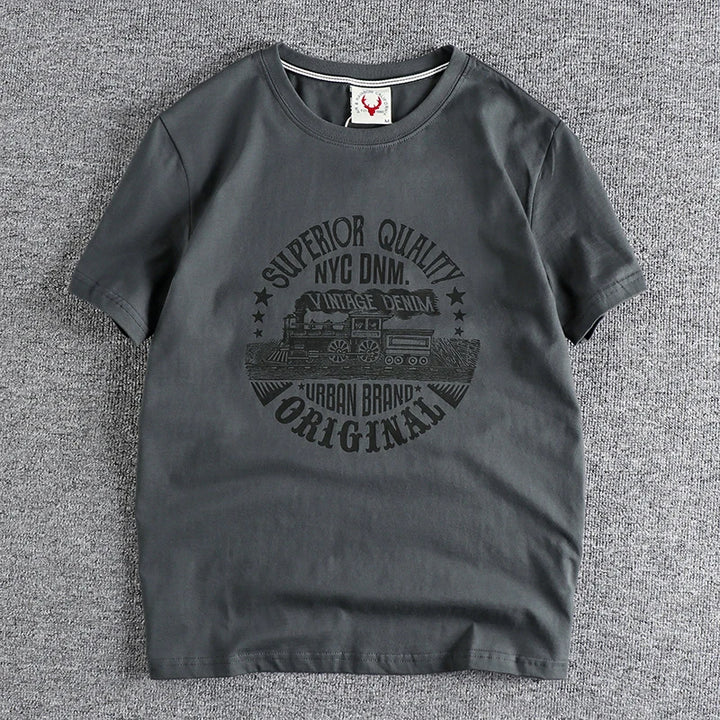 A Camiseta Masculina Lumen Class foi criada para quem aprecia um visual clássico com um toque único de personalidade. Sua estampa de trem icônico traz um charme especial, tornando a peça perfeita para homens que gostam de estilo, simplicidade e significado no look do dia a dia.