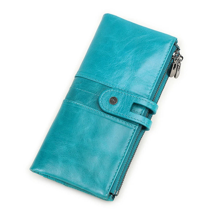 A segurança é prioridade na Asterno: ela possui uma fivela de fechamento de alta qualidade, sólida e durável. Os 3 bolsos internos com zíper (incluindo porta-moedas) utilizam zíperes cromados com tratamento anticorrosão, garantindo um deslizamento suave e longa vida útil. Com espaços dedicados para recibos e um porta-fotos para manter as memórias por perto, esta carteira organiza sua vida financeira com sofisticação e robustez.