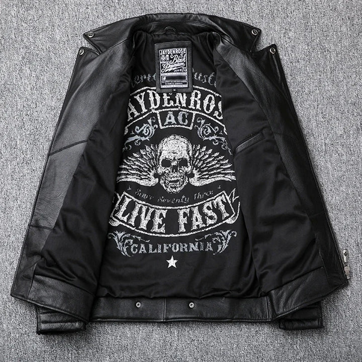 A Jaqueta Masculina Couro Motociclista Zenith Road foi criada para homens que buscam presença, autenticidade e estilo marcante. Fabricada em 100% couro bovino legítimo, ela oferece alta durabilidade, resistência e um acabamento premium que reforça sua identidade robusta.