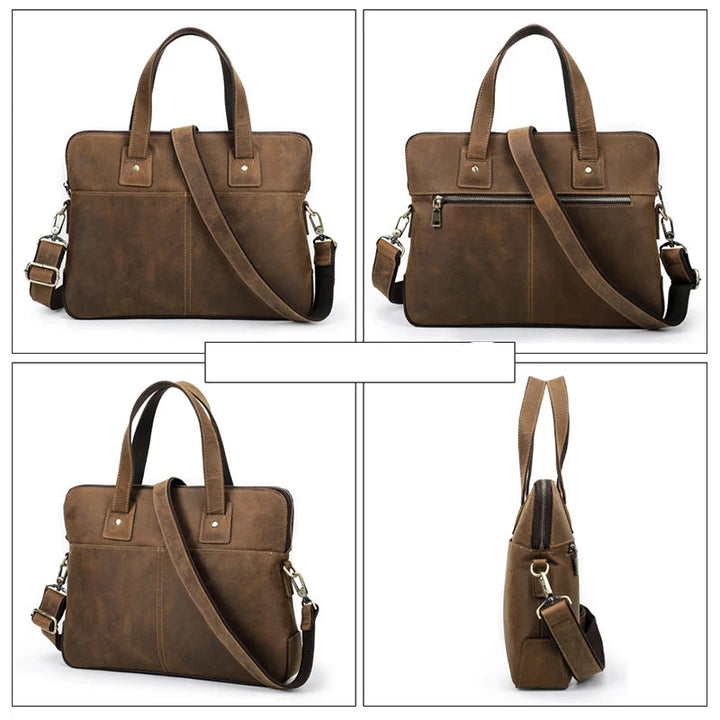 Com alça de mão em couro resistente e alça transversal ajustável com gancho removível, a Rivatore oferece conforto e versatilidade no transporte — ideal para uso profissional, viagens e rotina urbana. O zíper de metal de alta qualidade possui polimento e revestimento a vácuo que evita ferrugem e proporciona um fechamento suave.
